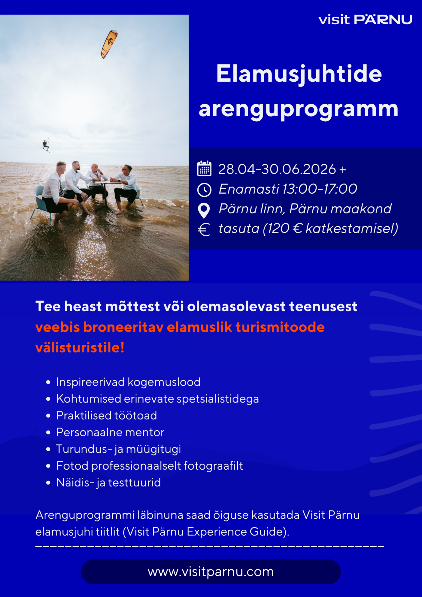 - programmi läbimisel Visit Pärnu elamusjuhi (Visit Pärnu Experience Guide) tiitli.