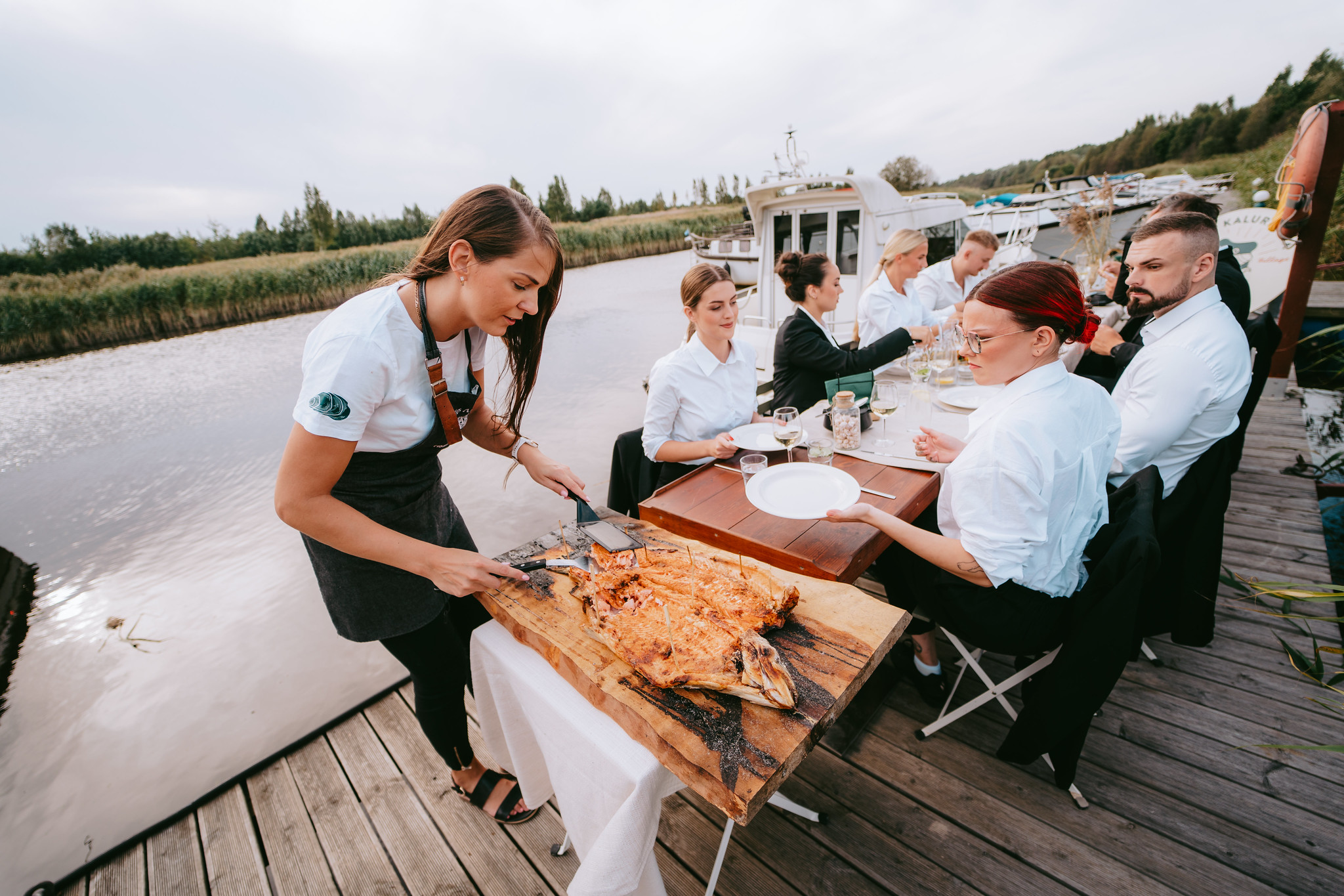 Fishing Village is a unique holiday and recreational centre in Pärnu by the River Sauga. We offer harbour services, rent rowing and motor boats, rent and sell fishing equipment, as well as provide caravan, camping and tenting services. Tourists with caravans can take advantage of our caravan site with power outlets for 20 cars. Without access to power, over 50 additional caravans can use the site. There is a large camping ground for putting up your tent.We also offer accommodation in two fishing cabins, large enough for four.