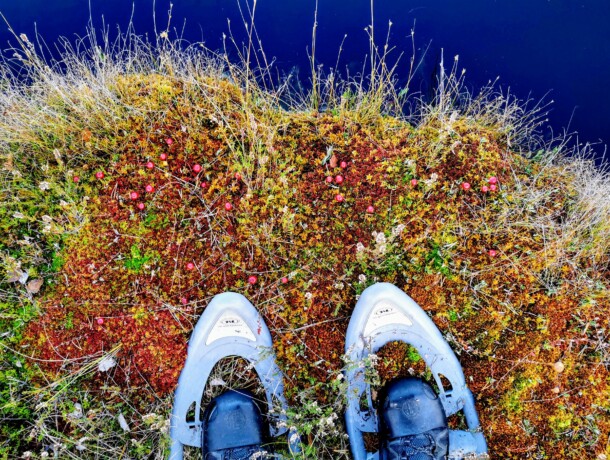 Seikle Vabaks bogshoeing and wild swimming in a bog lake