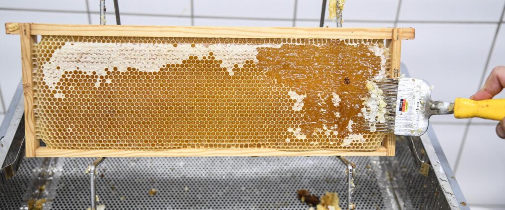 Tule kaaneta lahti värskelt tarust võetud kärjed, vurrita, sõelu ja pane ehe Pärnumaa mesi endale purki!