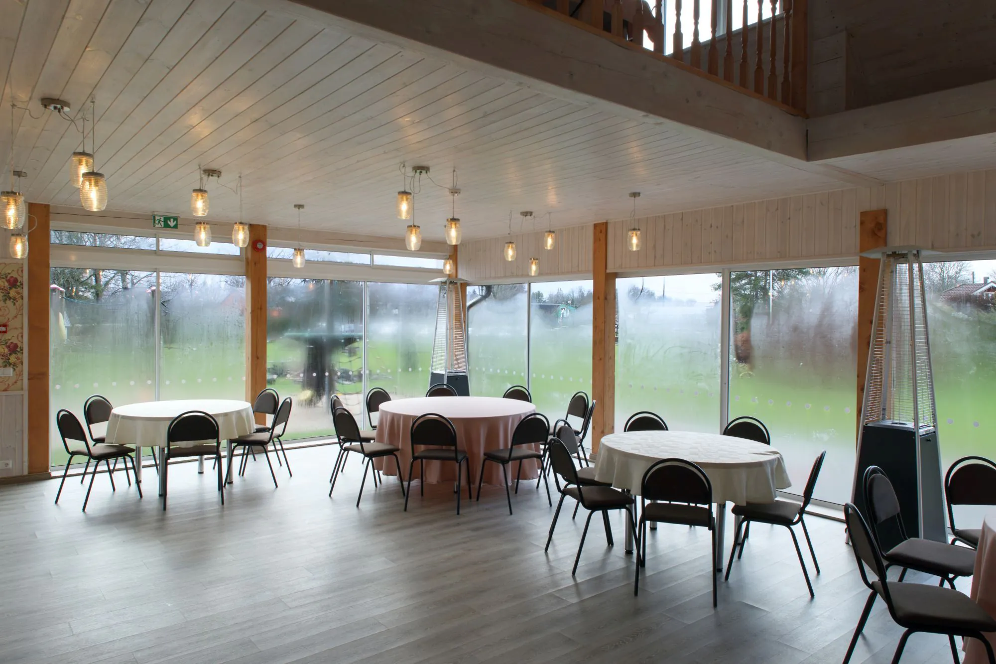 The sliding walls of LAALI glass pavilion can be fully opened. The two-storey building is a perfect place for professional events and also receptions or company retreats for up to 150 people. During the warm seasons, it is perfect for outdoor seminars.