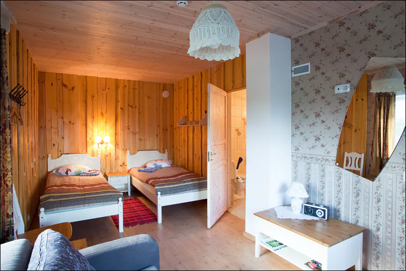 Klaara-Manni Holiday and Conference Center can accommodate up to 100 people in 25 rooms with all amenities (some with a shared bathroom), a total of 60 beds and 40 additional beds. The complex includes also a studio apartment and apartments with two and three bedrooms. All rooms have modern wooden furniture and windows that can be opened to let in fresh forest air and listen to birds singing. 8 rooms have been adapted for people with disabilities (ramps, special equipment in the rooms).