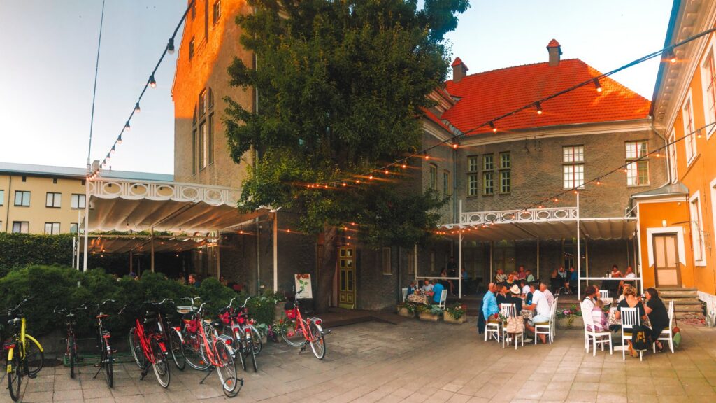 In the summer, you can enjoy our dishes while relaxing on a terrace under a large pear tree. An open yard, fresh meal and cold drinks are served by chef Virkko Vendla and crew.