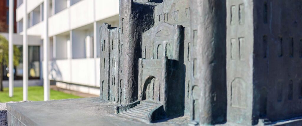 The monument to the Endla Theatre designed by the sculptor M. Karmin was constructed in 1989.