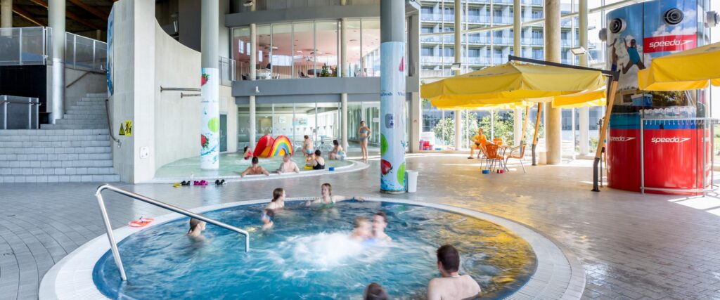 Everyone going down the slides of the water park gets a great adrenaline injection. 4 different slides start from the start platform that is 11 metres high and the longest of them is 85 metres. You will land safely in the security channel after a quick and fun dash down the slide. Braver visitors can also try the 4-metre diving platform and rapid mountain rivers. There are also several swimming pools, including a hot outdoor pool (which is open also in winter), Jacuzzis, saunas, the Aqua Bar and summer terrace in the water park.