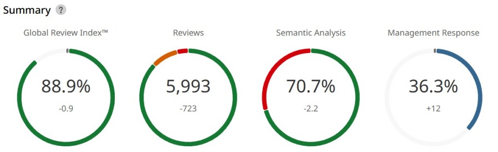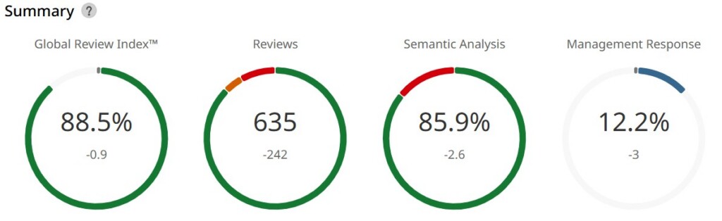 - Ettevõtjate poolt tagasisidedele vastamise osakaal on langenud 3%. Tervikuna on tegemist on väga madala näitajaga. Hea vastamismäär algab ligikaudu 50%-st. Kiire ja asjakohane vastamine külastajate arvustustele on oluline, sest see parandab ettevõtte mainet, suurendab klientide usaldust ja annab konkurentsieelise, näidates samal ajal, et ettevõte on valmis probleeme lahendama.