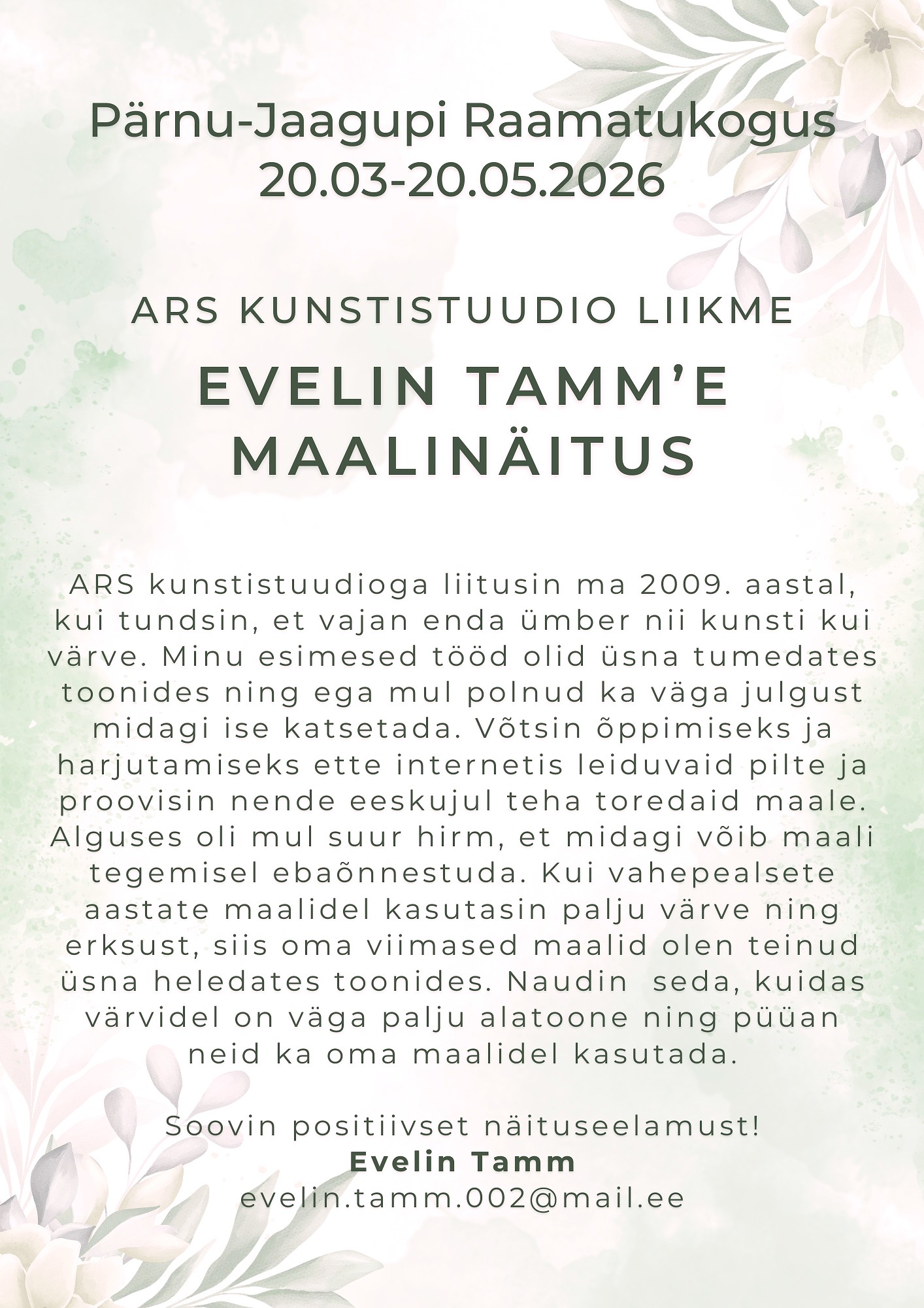 ARS kunstistuudio liikme EVELIN TAMME MAALINÄITUS