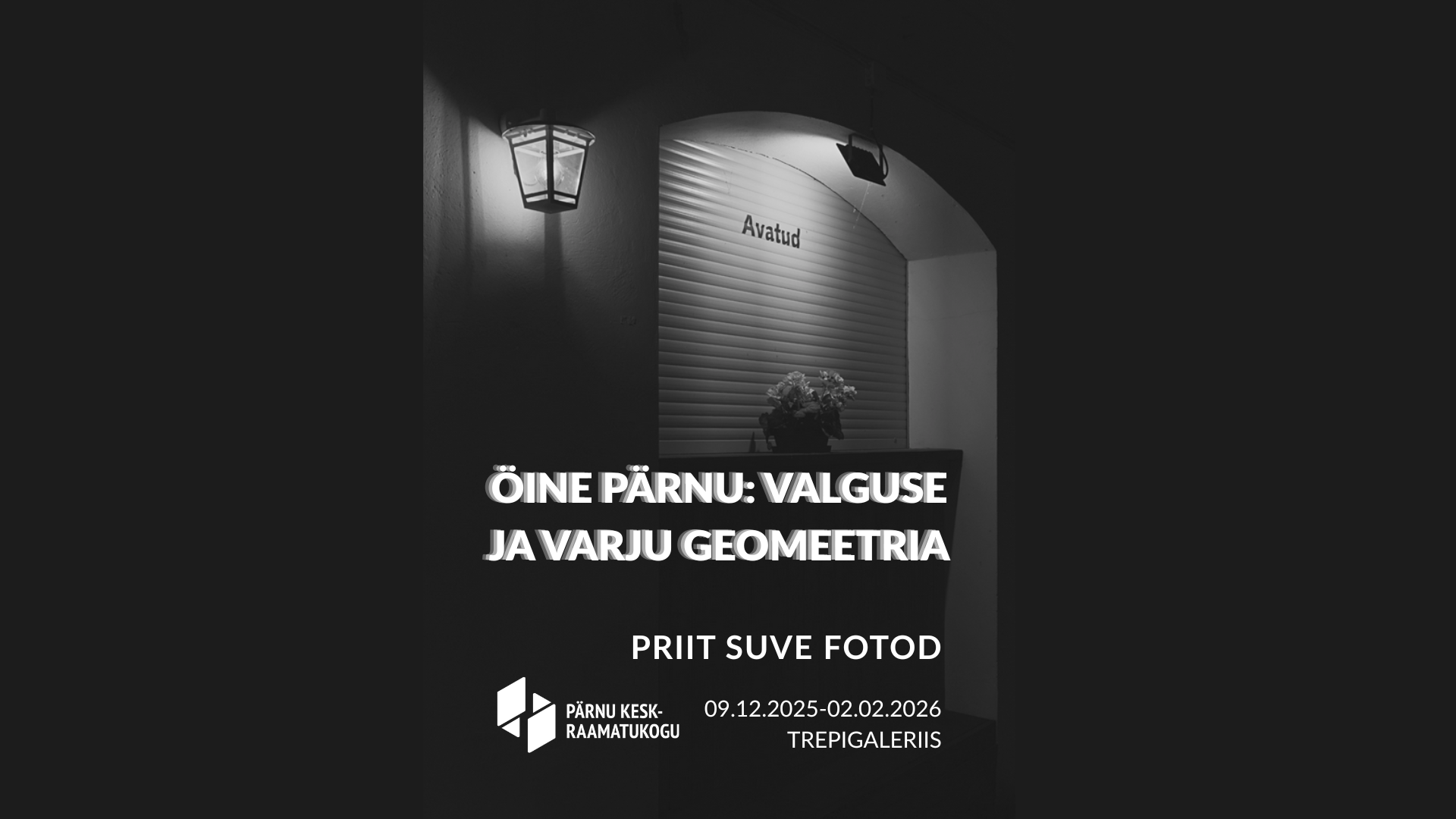 9. detsembrist 2025 kuni 2. veebruarini 2026 on Pärnu Keskraamatukogu trepigaleriis üleval Priit Suve fotonäitus „Öine Pärnu: valguse ja varju geomeetria“.