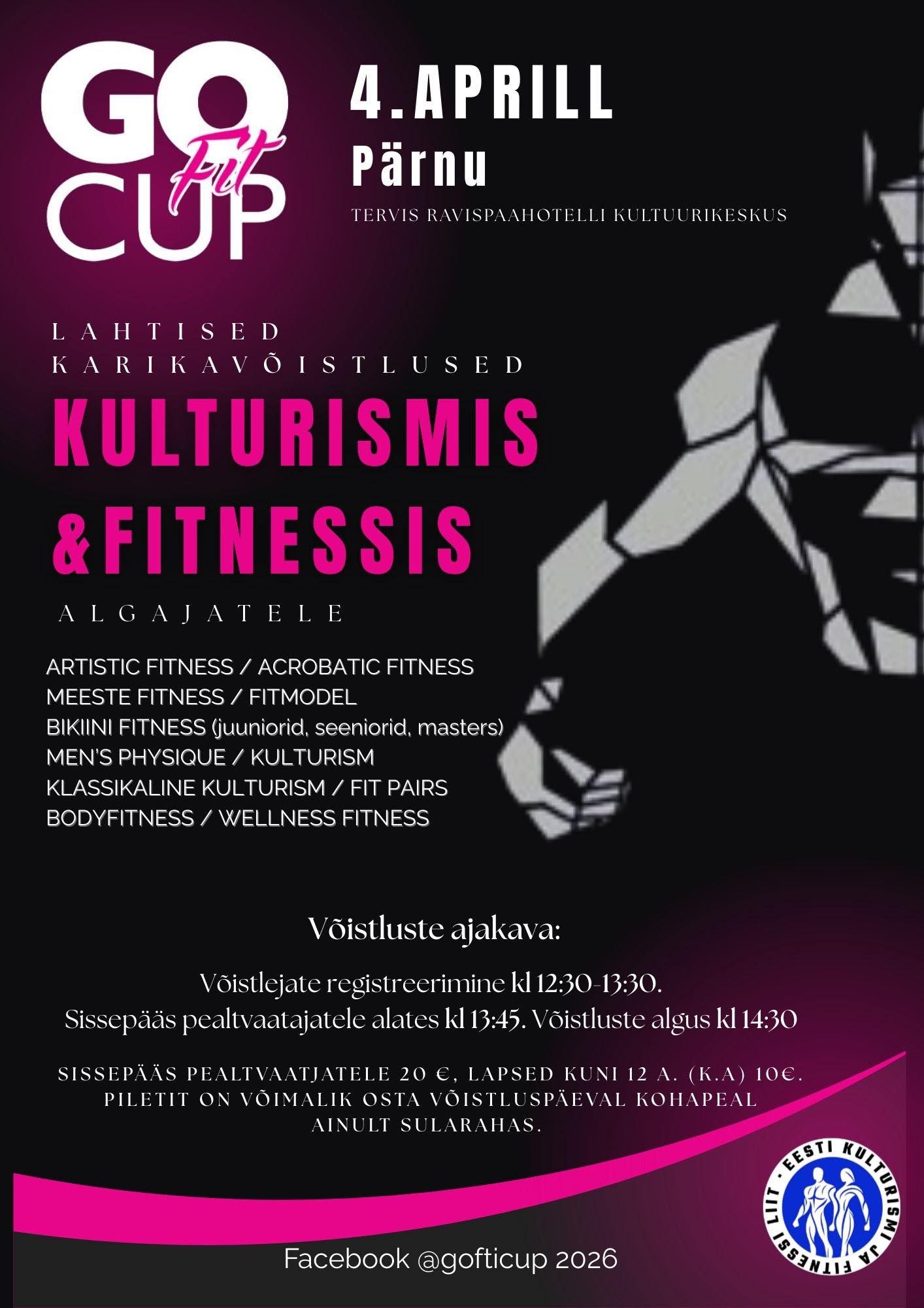 Korraldame 4.04.2026 Go Fit Cup 2026 võistlust, mis on mõeldud algajatele kulturismi ja fitnessivõistlejatele! Samuti toimuvad meie võistluse raames Eesti karikavõistlused lastefitnessis!