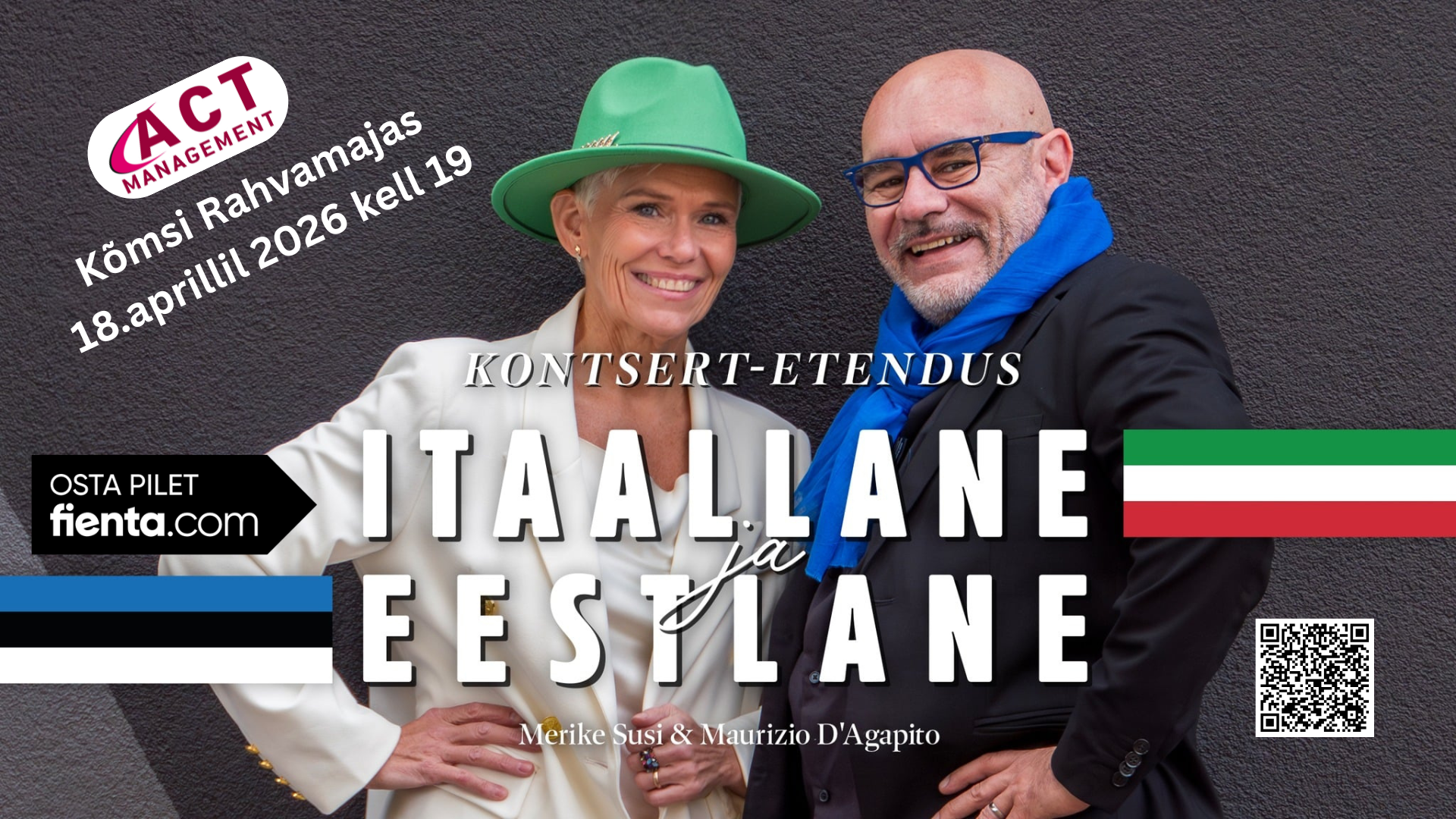 MERIKE, energiline ja särav "eesti täht", ning MAURIZIO, originaalne "itaalia täkk," toovad lavale unikaalse segu kahest maailmast – otse Eestist ja Itaaliast (Roomast).