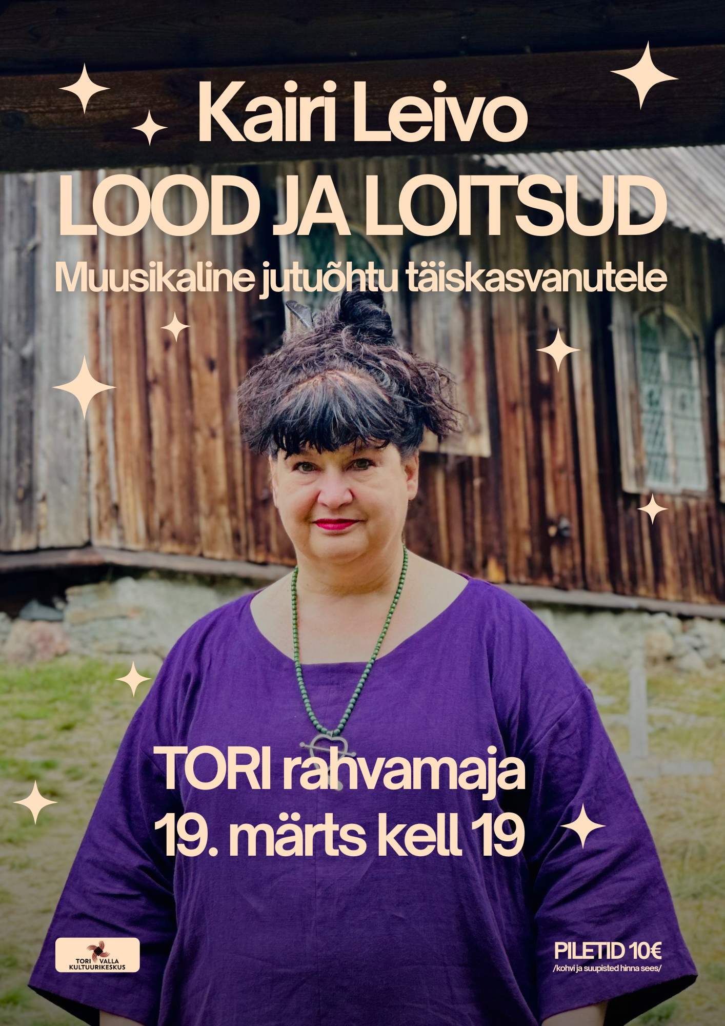 🌌 LOOD JA LOITSUD: Muusikaline jutuõhtu täiskasvanutele 🎶 Kas igatsed õhtut, kus aeg korraks peatub ning lood ja laulud viivad sind rännakule? Kutsume sind osa saama millestki lummavast! Kairi Leivo toob Tori Rahvamajja oma erilise kava “Lood ja Loitsud”. See on õhtu täis pärimust, soojust ja muusikat, mis on loodud spetsiaalselt täiskasvanud kuulajale. Tule ja lase end kanda lugudel, mis on võib-olla ammu unustatud, ja loitsudel, mis helisevad tänapäevas uutmoodi. 🕒 MILLAL JA KUS? Aeg: 19. märtsil kell 19.00 Koht: Tori Rahvamaja 🎟️ PILETID JA MUGAVUS Hind: 10€ Hinna sees: Mõnusamaks olemiseks on pileti hinna sees ka kohv ja suupisted “Lugu on sild eilse ja tänase vahel.” – Tule ja ehitame neid sildu koos! Sündmust korraldab Tori Valla Kultuurikeskus. Võta sõber kaasa ja tule naudi õhtut täis pärimuse väge! ✨