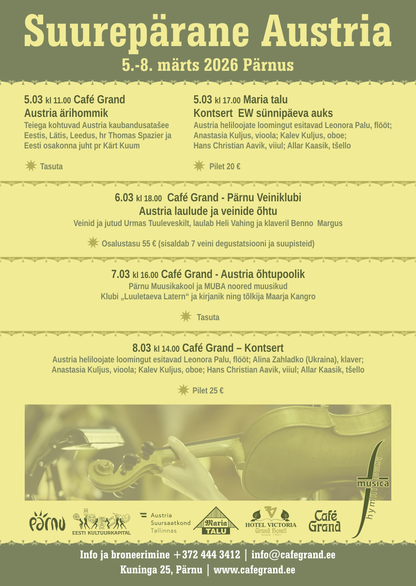 Pärnu Veiniklubi AUSTRIA LAULUDE JA VEINIDE ÕHTU - Suurepärane Austria 5.-8. märtsil Pärnus.