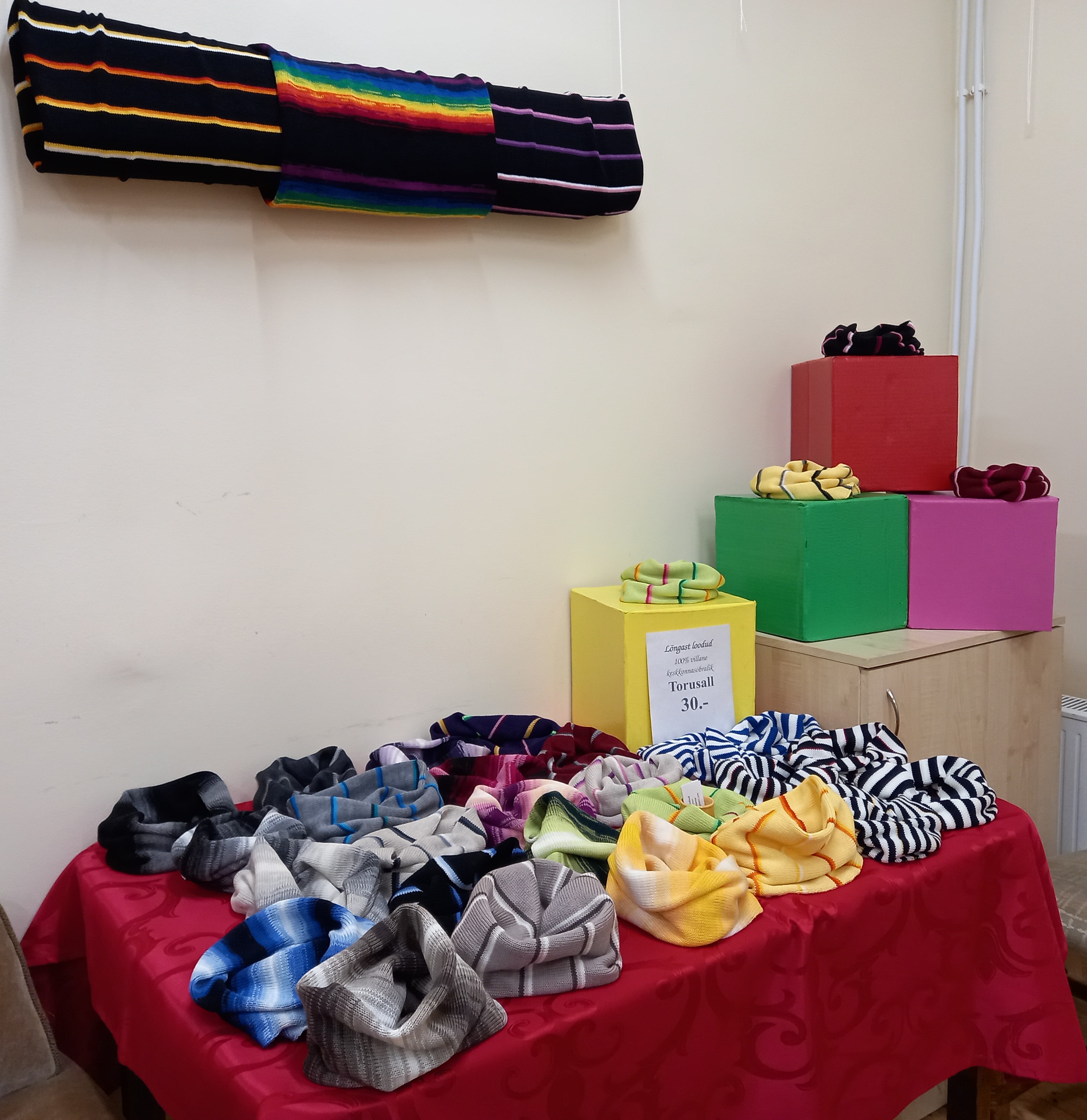 Riine Latserus on kirglik kuduja. Kudumismasinaga on ta kudunud peaaegu 40 aastat. Riine torusallides on kihelkondade mustreid, kui ka teisi triibustikke, mis on inspireeritud esivanemate värvitunnetusest ja Põhjala kargest loodusest.