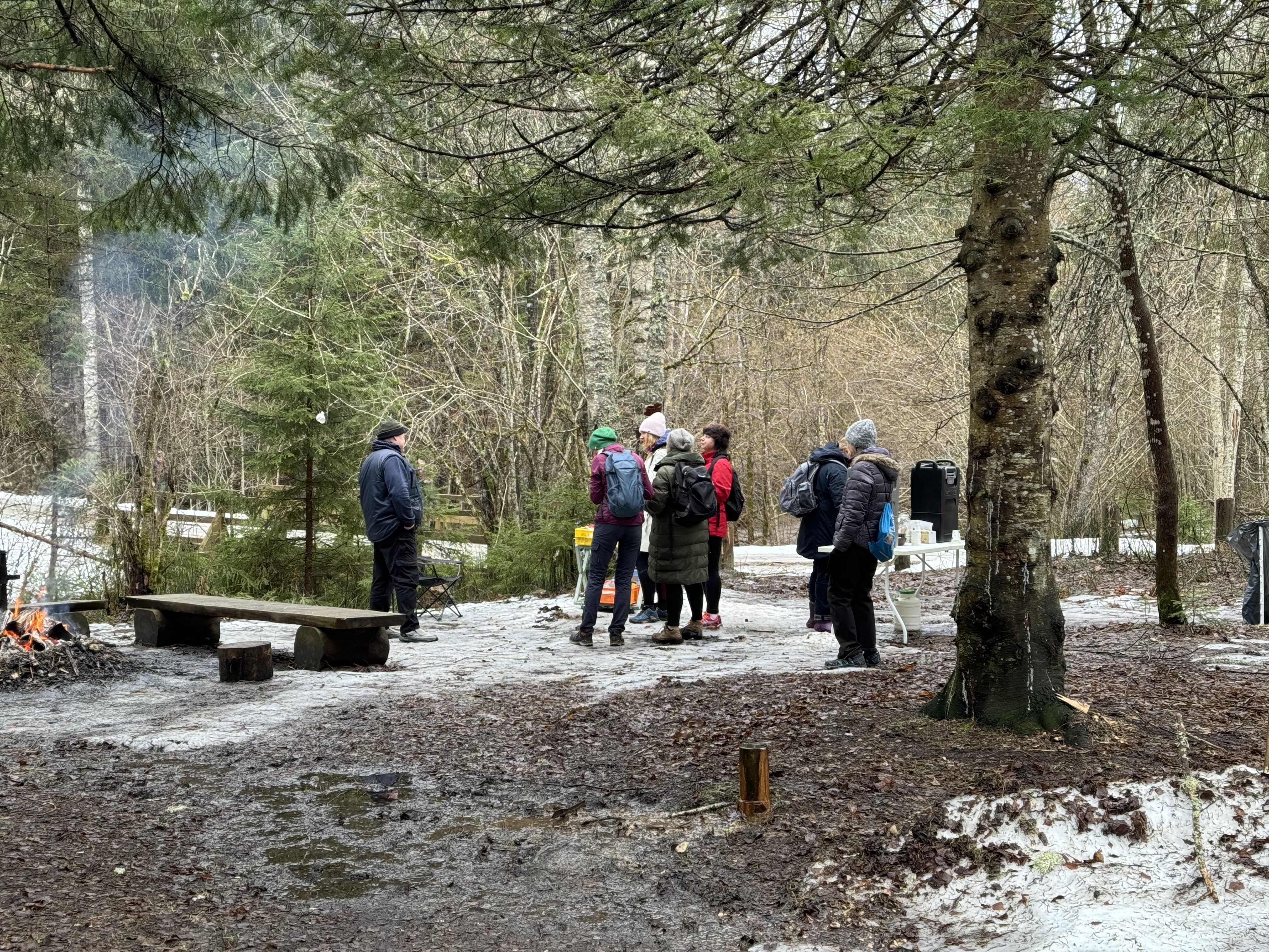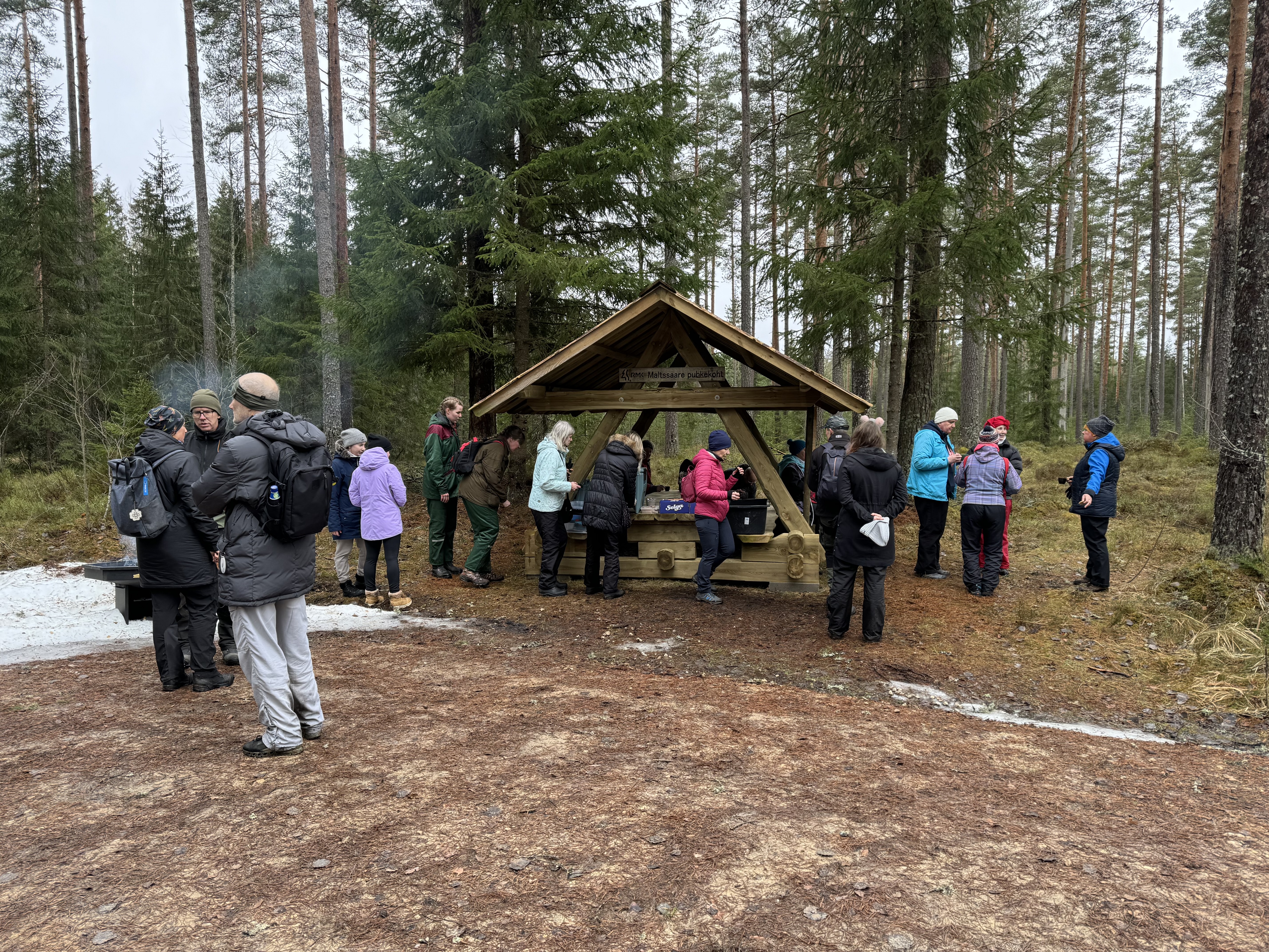 Saeveskis ootavad matkajaid lõke, tee ja suupisted.