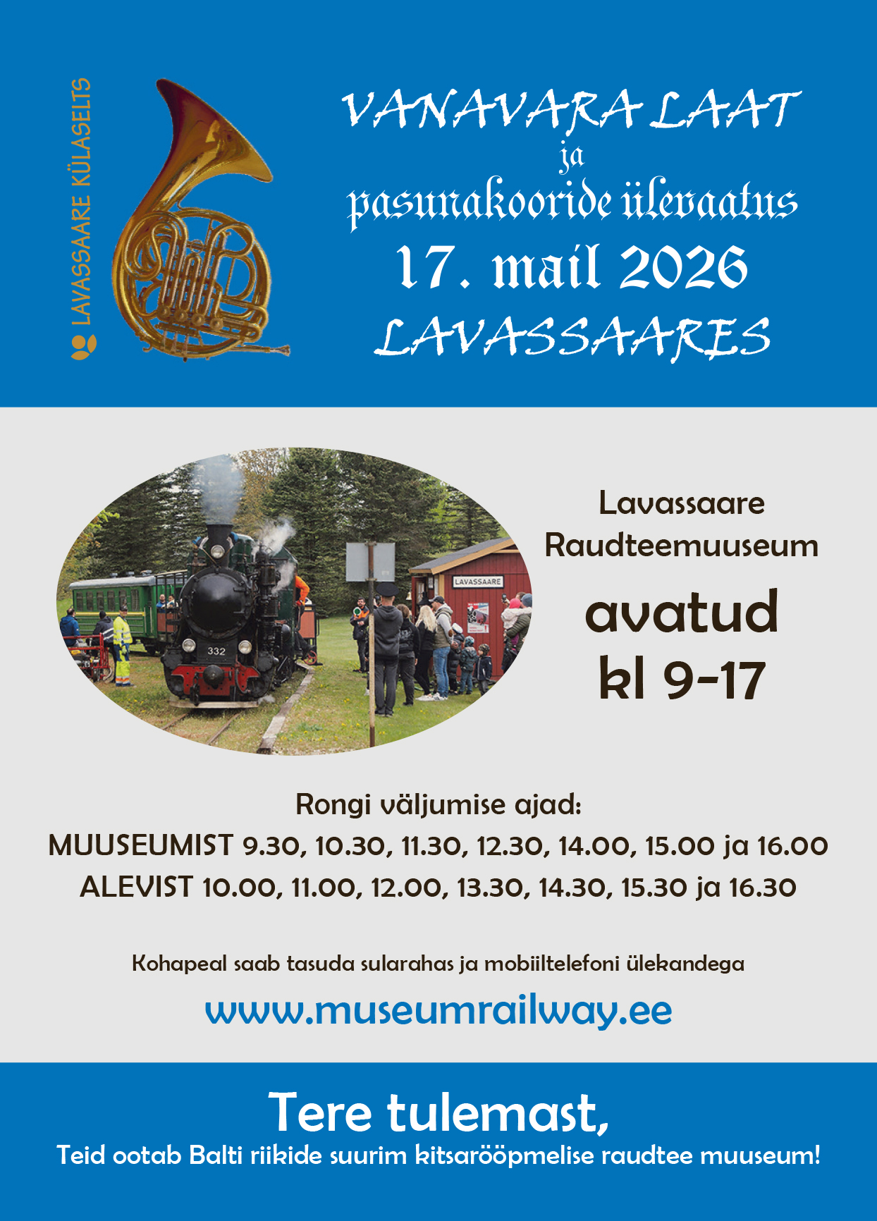 Laadapäeval saab külastada Lavassaare Raudteemuuseumi - tutvuda püsiekspositsiooniga ning nautida rongisõitu. Muuseum on avatud ja ootab külastajaid terve päeva 9- 17ni.